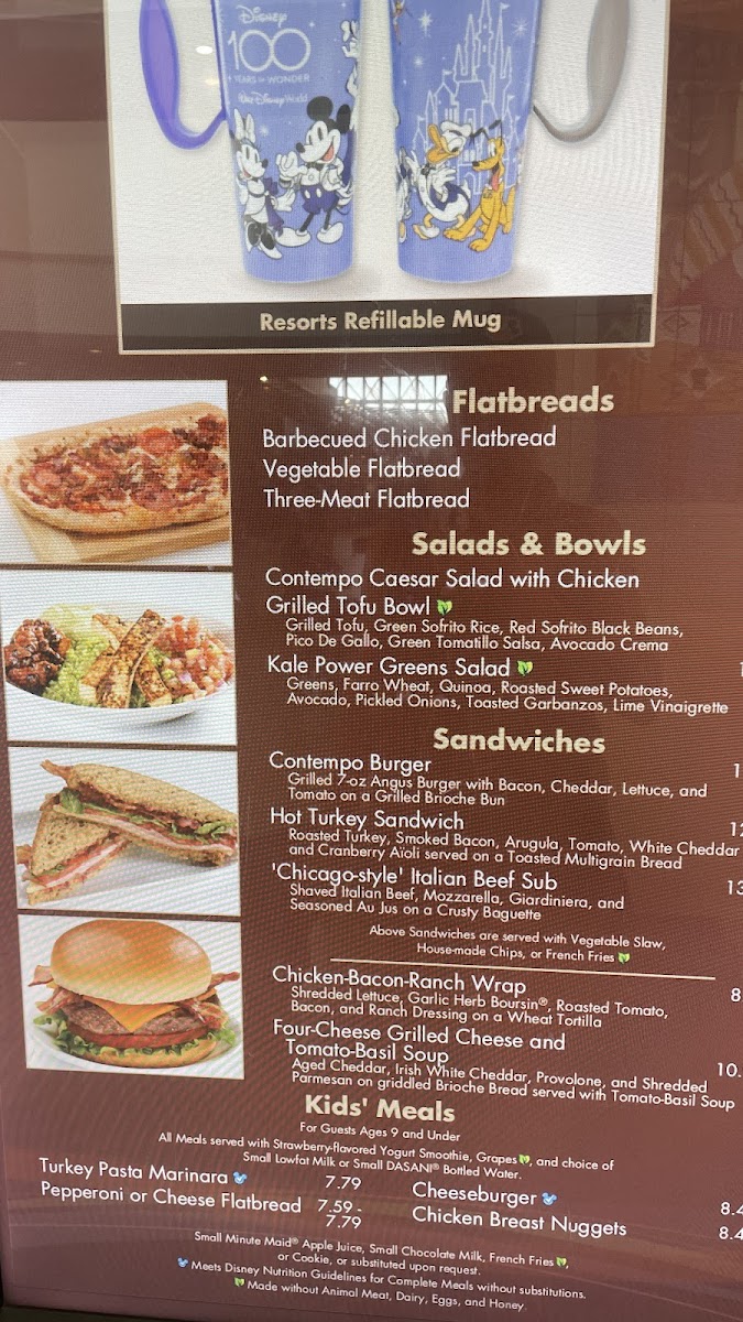 Welcome to Contempo Café, an inviting quick-service eatery located within Disney’s Contemporary Resort. This charming café offers a delightful menu that caters to both families and adults seeking a no-fuss meal. Start your day with the hearty Breakfast Tofu Bowl or Steelcut Oatmeal, both featuring fresh, seasonal ingredients. For a satisfying snack, the Mickey Ice Cream Sandwich or Frozen Lemonade are irresistible choices that capture the whimsical Disney spirit.